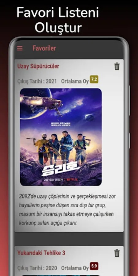 Thanks to the Filmist application, you can watch the trailer of the movie you want in the category you want, learn the subject of the movie, get information with IMDB score, and create your own favorite list with the movies you like and make a huge movie archive for yourself!