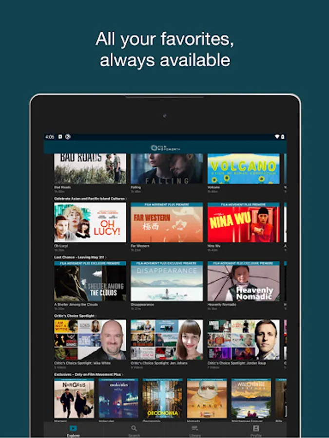 As a Film Movement subscriber, you will enjoy unlimited access to our specially curated library of titles and enjoy them wherever you go, on all your devices. From compelling documentaries and exceptional art house features to groundbreaking classics and the latest foreign films, we invite you to join us in our mission to spotlight and celebrate independent cinema.