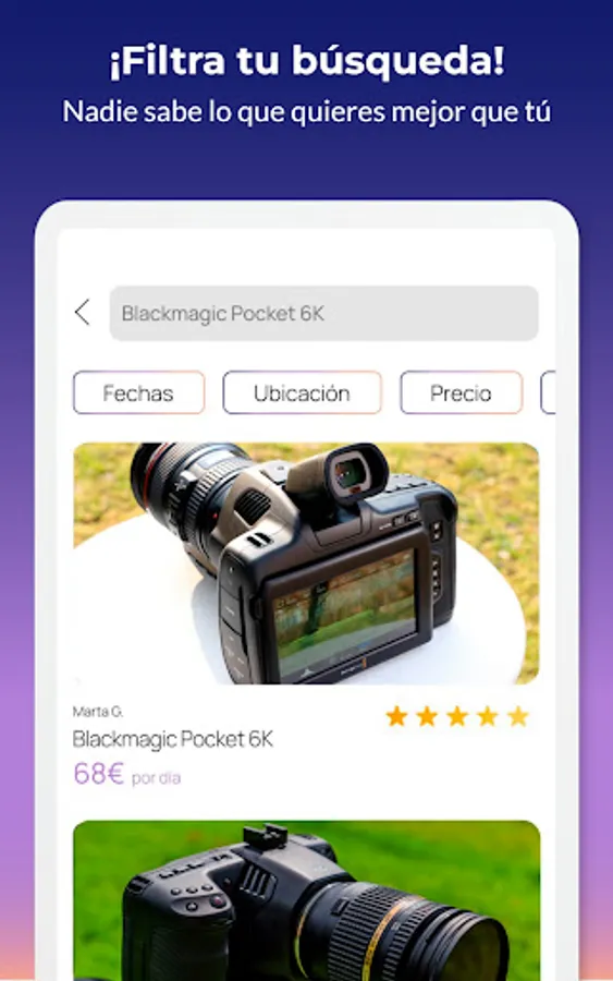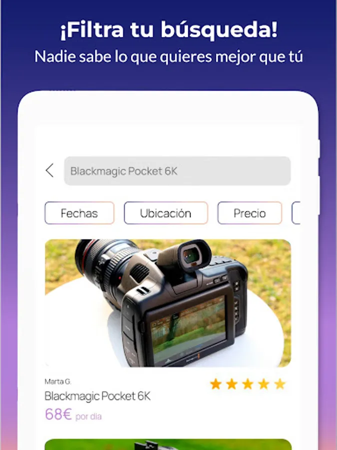 -It is affordable: With thousands of products around Spain, Filmo fits perfectly whatever your production. Useful to find the material you need, from making large productions to immortalizing weddings, with the most competitive prices on the market. Plus, you'll be able to compare thousands of prices in an instant.