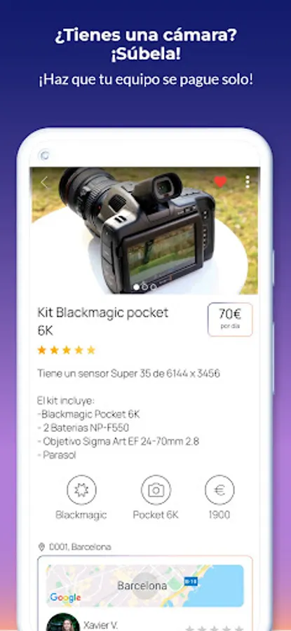 -Ease: From our app you can manage everything, from contacting the user who rents your material to issuing an invoice. It's that simple!