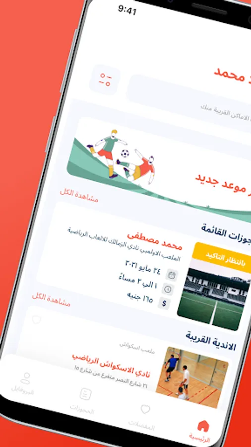 • The ability to reserve stadiums for various sports easily through the phone, and choose the appropriate timing and services