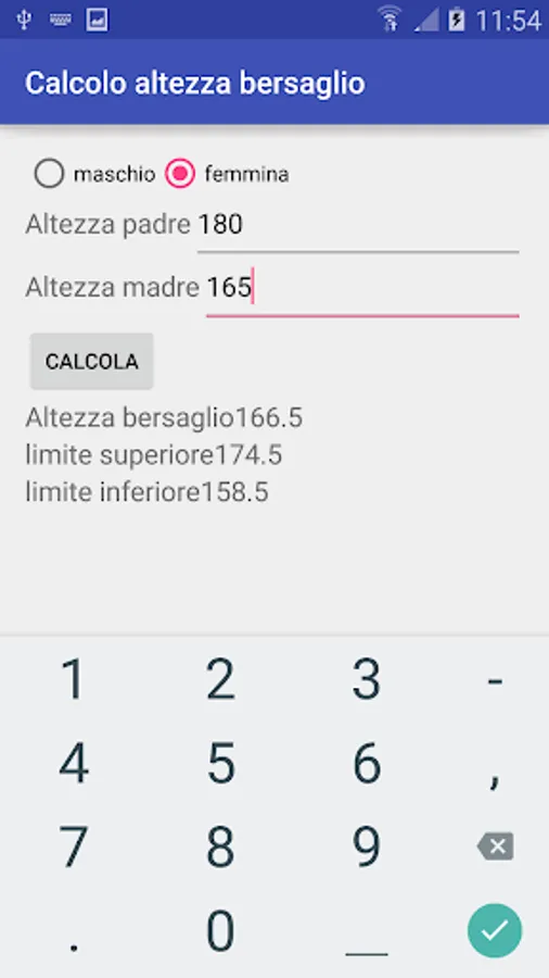 For example, the height of a child whose father is 180cm tall and his mother 1.65, will average 166.5 cm and with 95% probability will be between 158.5 and 174.5 cm.