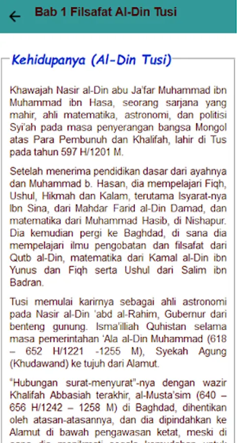 Nashiruddin ath-Thusi was born in the city of Tus in medieval Khorasan (northeastern Iran) in 1201 and started and started studying at an early age. In Hamadan and Tus he studied the Quran, Hadith, Ja'fari jurisprudence, logic, philosophy, mathematics, medicine and astronomy.