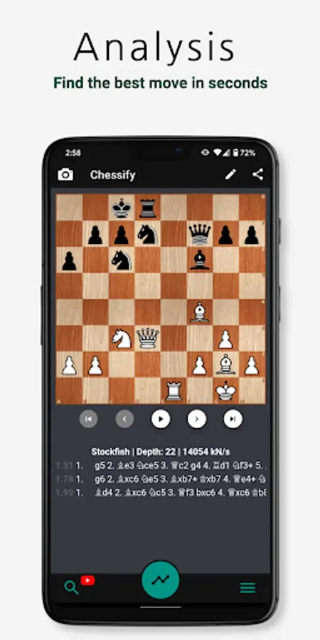 Improve your playing level and skills with our magic chess tools: real chessboard, book, & diagram scanner, unique video finder, & Superfast cloud engine. Analyze puzzles & games with Stockfish 16 & Lc0. Play chess with friends online or challenge the computer for an offline game.