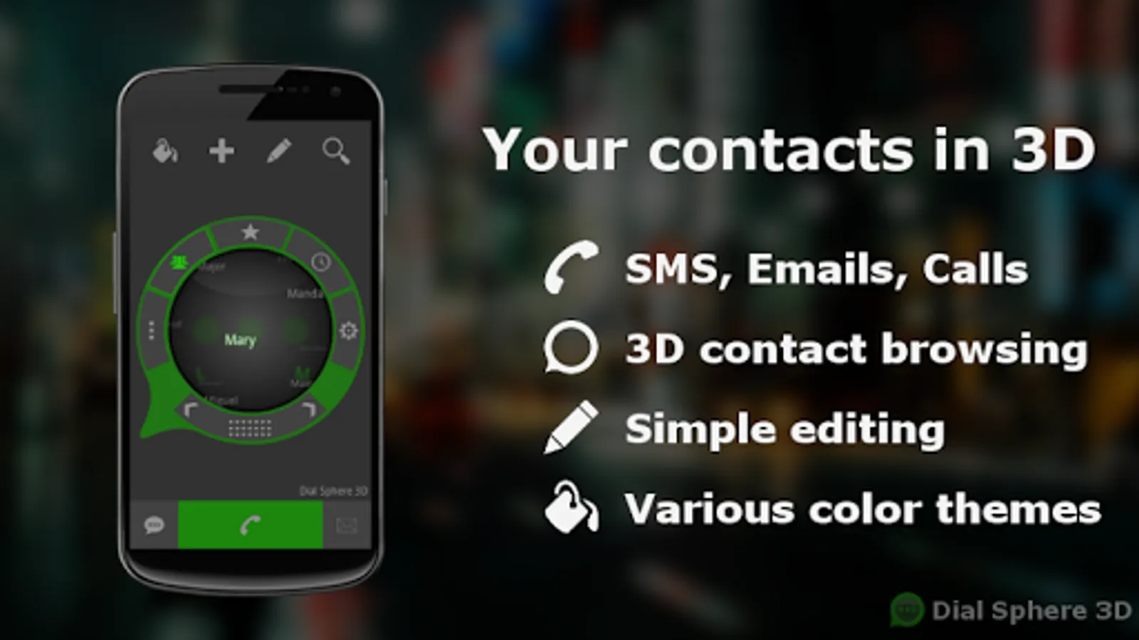 " Dial Sphere 3D " is the first free to use 3D dialer for your phone.
