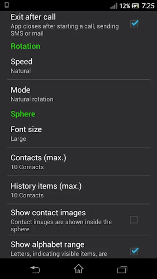 • Contact images pop up inside the sphere (optional)