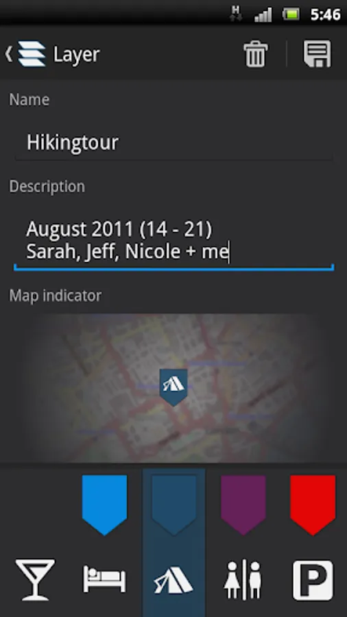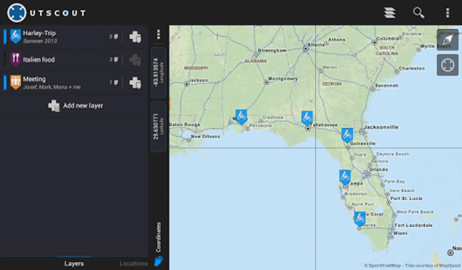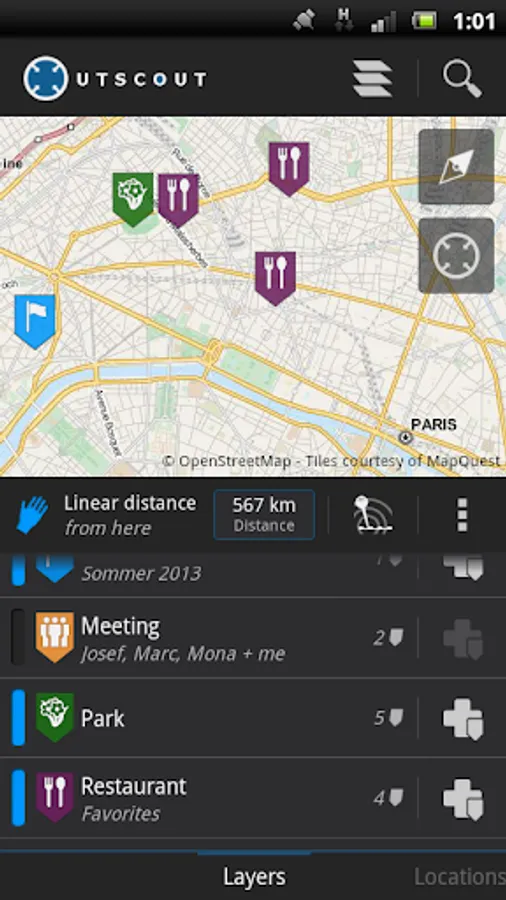 On the first page ('LAYERS') you can add layers as a container for locations / geopoints