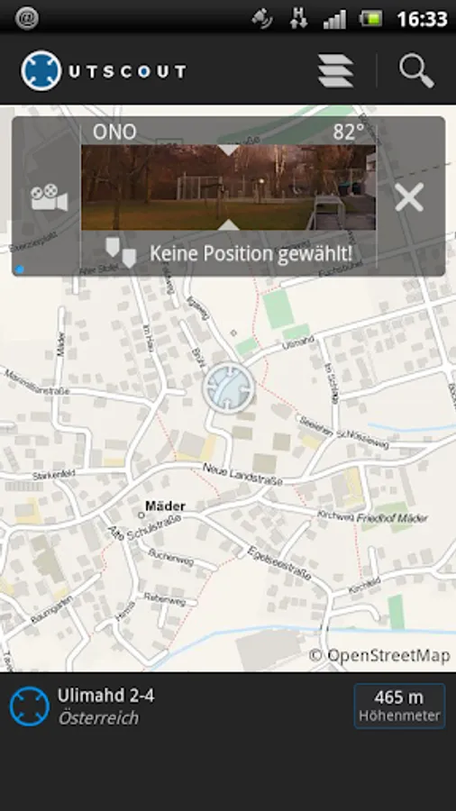 Your current altitude is shown (optional, if gps enabled) in the statusbar next to/below the map.
