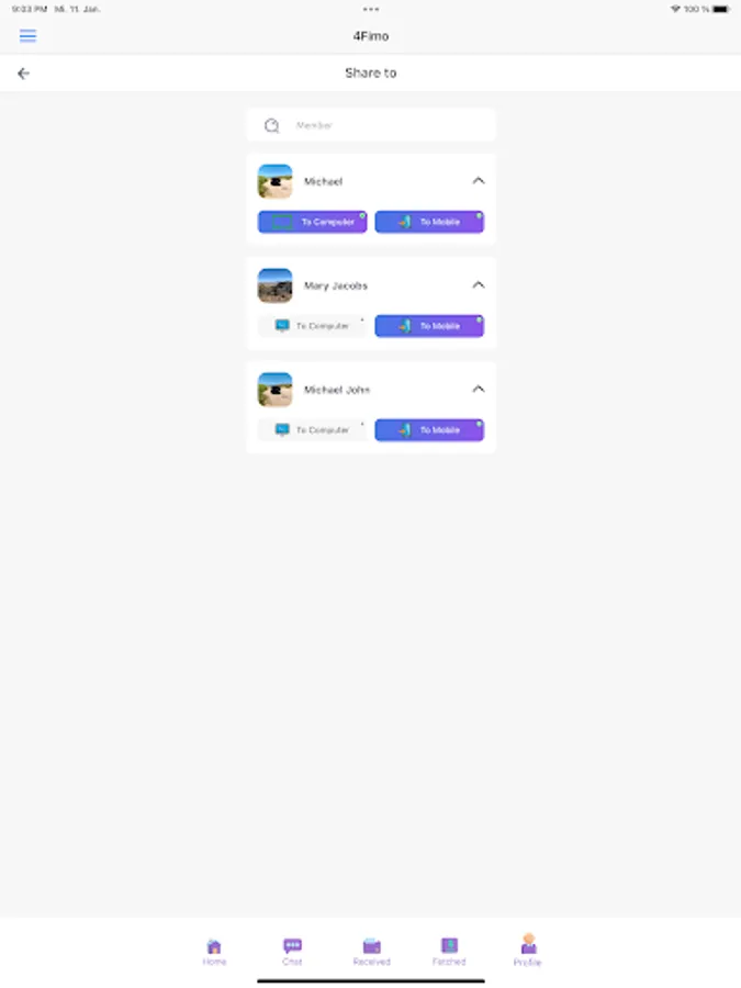 Use your wireless devices to connect directly to your personal computer; search, fetch, send, share files, and use 4Fimo private and secure instant messenger.
