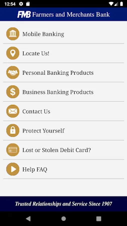 Manage your finances wherever and whenever you want. Farmers and Merchants Bank’s Mobile Advantage allows easy access to your accounts directly from your Android Device.