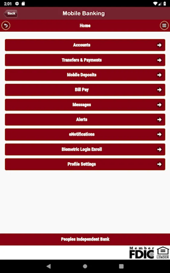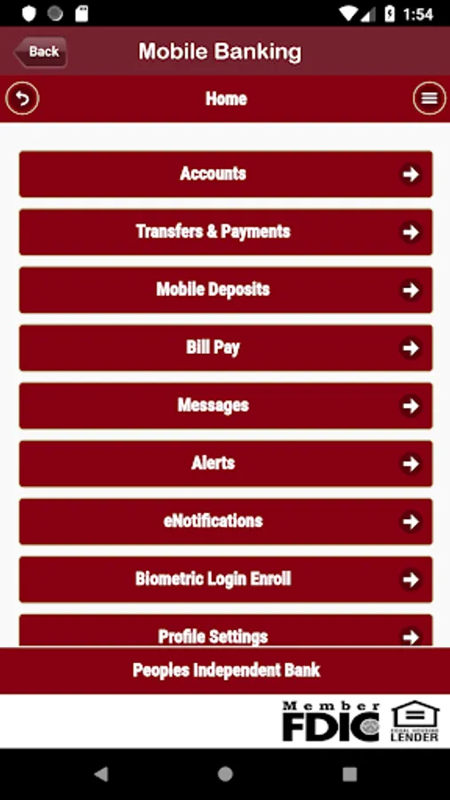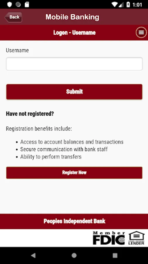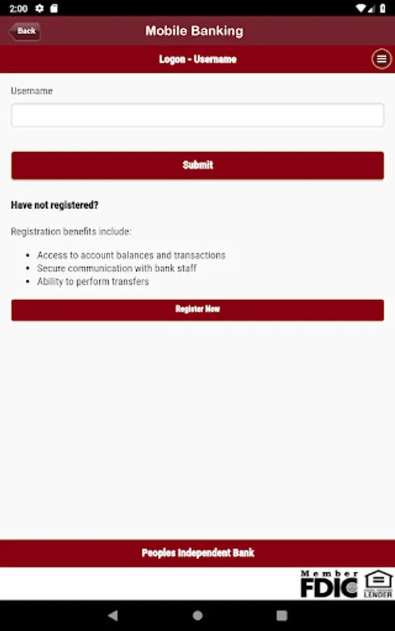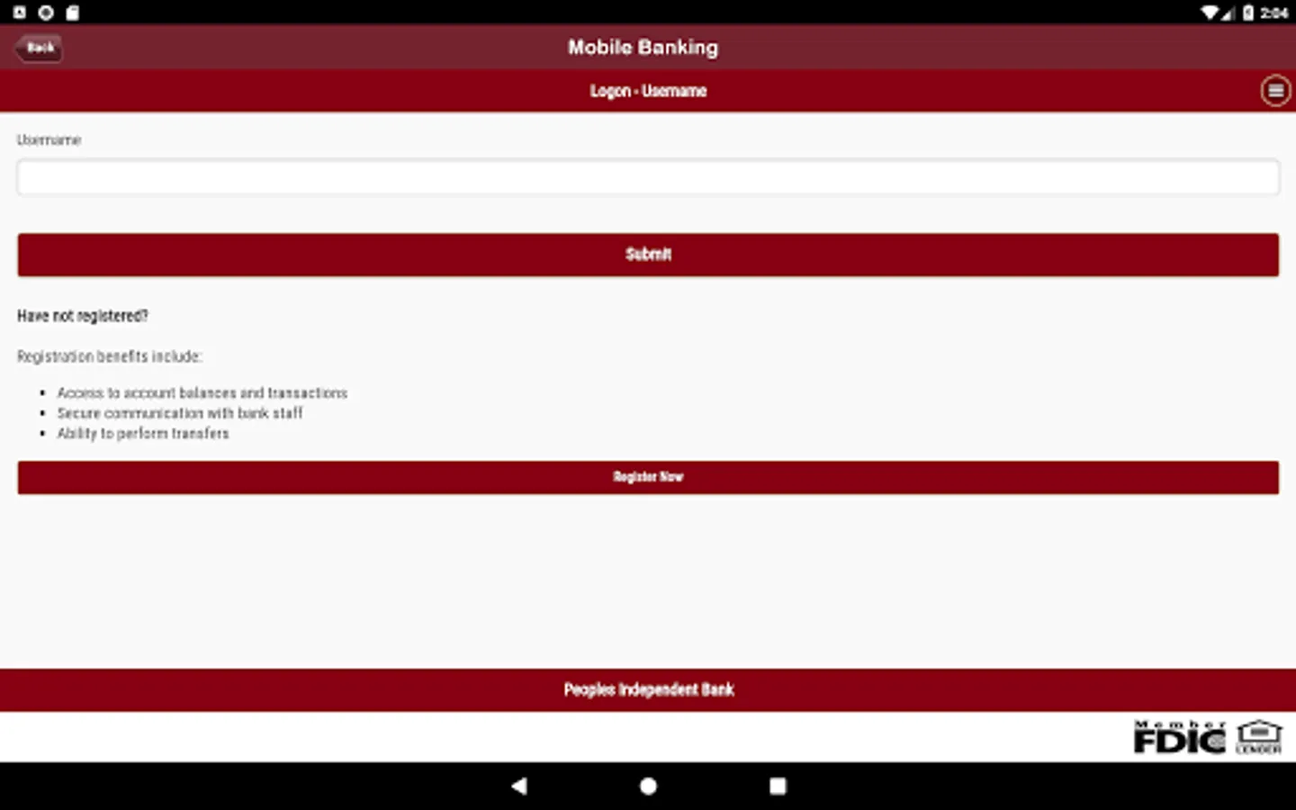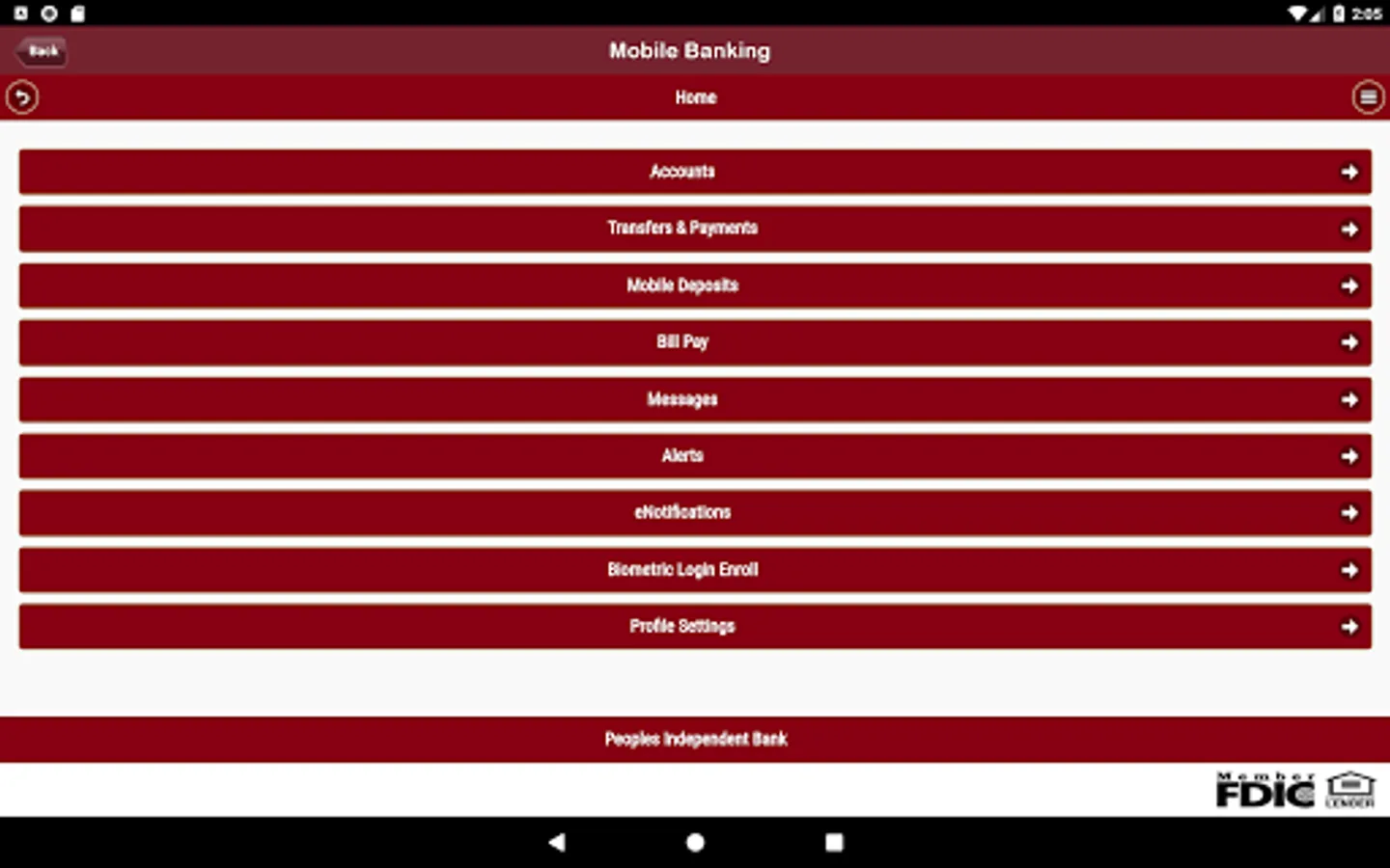 To take advantage of Peoples Independent Bank’ Mobile Banking App, you must be registered for PIB’s Online Banking. Please visit www.pibonline.com to register.