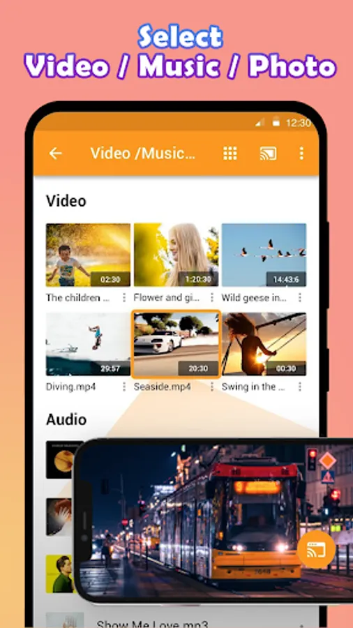 You can play videos on Mobile phone. Mirroring your phone screen to a Smart TV or any other android device with a screen mirroring feature.