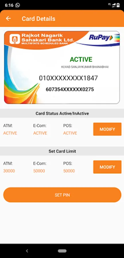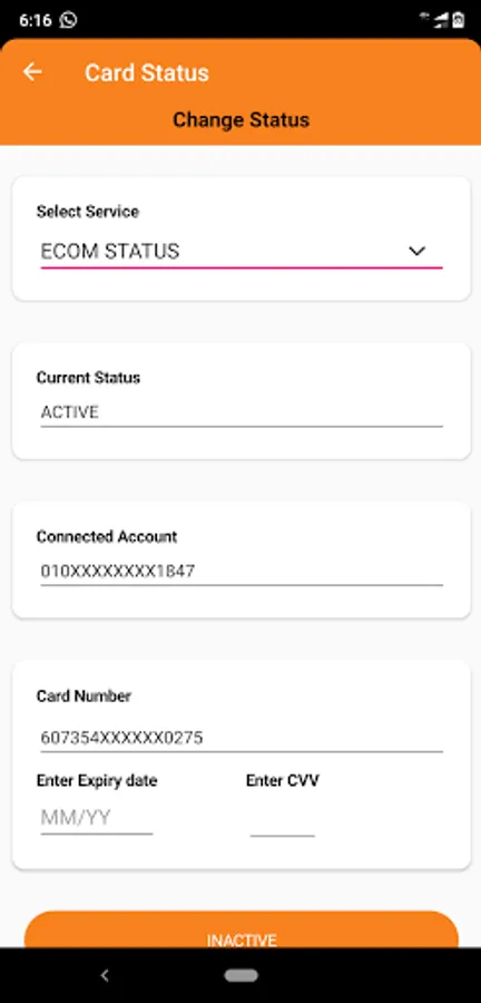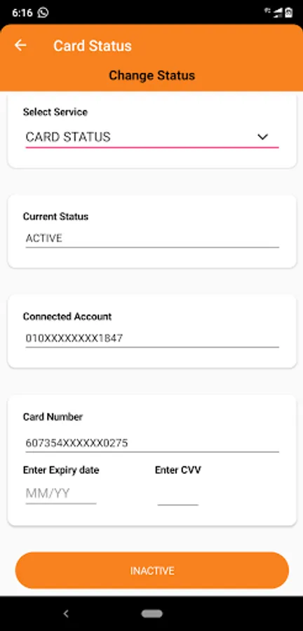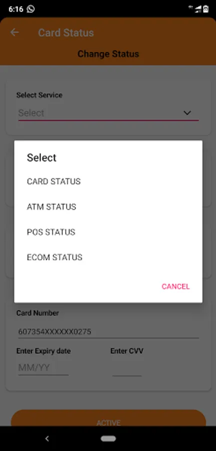 3) Option to Activate / De-Activate the card using CARD STATUS option.