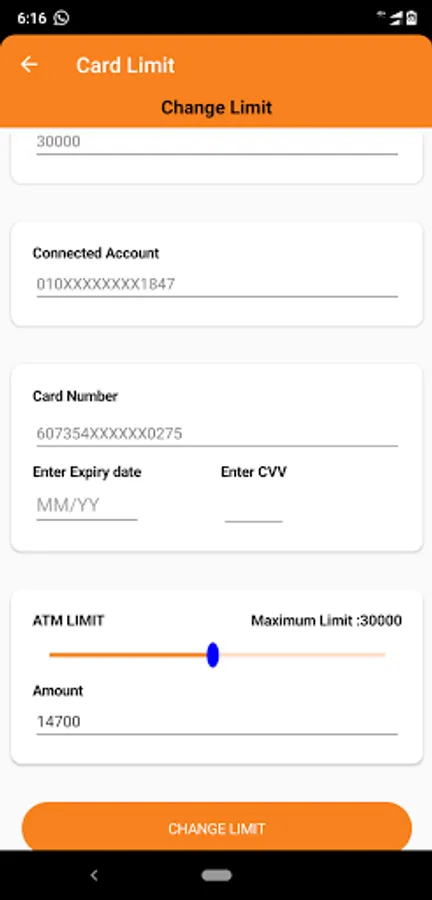 2) SLIDER as well as AMOUNT field options to set your ATM, ECOM & POS Limits.