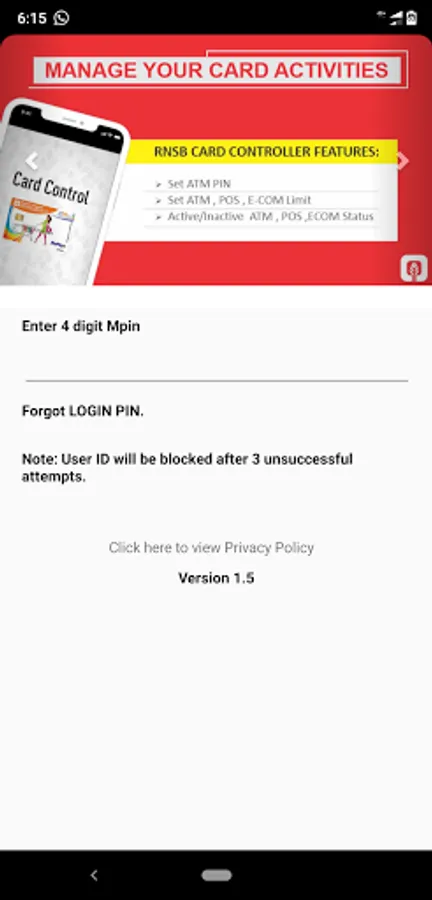 1) Reset your RNSB CARD CONTROL APPLICATION PIN using “Forgot LOGIN PIN” option.