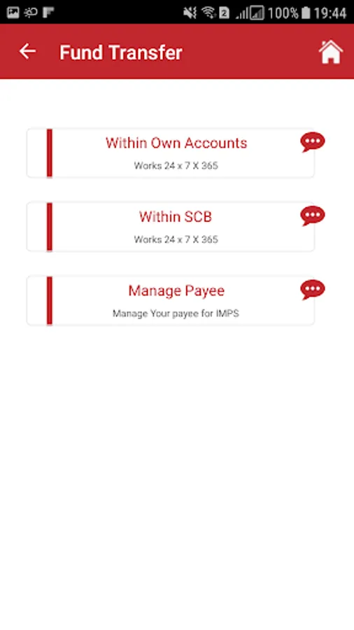 This app includes Funds Transfer, Balance Enquiry, Manage Payee