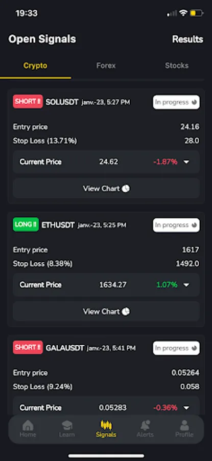 Nous ne sommes affiliés à aucun broker, c’est à vous de faire votre choix. Nous ne gagnons rien à vous faire perdre de l’argent. Un abonnement pour avoir accès aux signaux est disponible afin de pouvoir rémunérer et les personnes travaillant avec nous. Les places pour cet abonnement seront limitées pour garder un contrôle et que votre expérience au sein de notre application soit agréable. Votre abonnement est sans engagement est peut être arrêté à tout moment. N’oubliez pas qu'une grande partie de l’application est 100% gratuite.