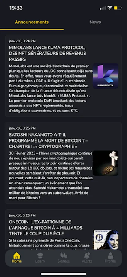 Vous retrouverez toutes l’actualité sur la crypto monnaie sur notre application. Nous reportons des articles de site web sur notre application. Les sites web utilisés sont aussi analysés et filtrés afin de vous garantir des actualités correctes.