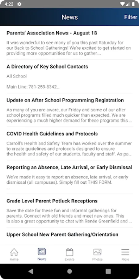 The Carroll School app provides parents with all the information they need in one place, conveniently accessed and formatted specifically for consumption on their mobile devices.