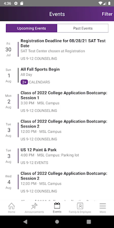 - Browse calendars for information about upcoming events; filter calendars to only see events in which you have interest