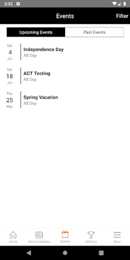 • Review Athletic event details, including opponents, game results, recap commentaries, and more