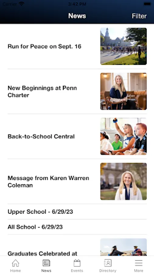 The information presented in the William Penn Charter School app is drawn from the same source as the William Penn Charter School website.