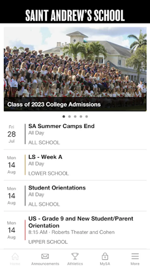 The Saint Andrew's School app provides parents, students, and employees with school information they need in one place, conveniently accessed and formatted specifically for consumption on their mobile devices.