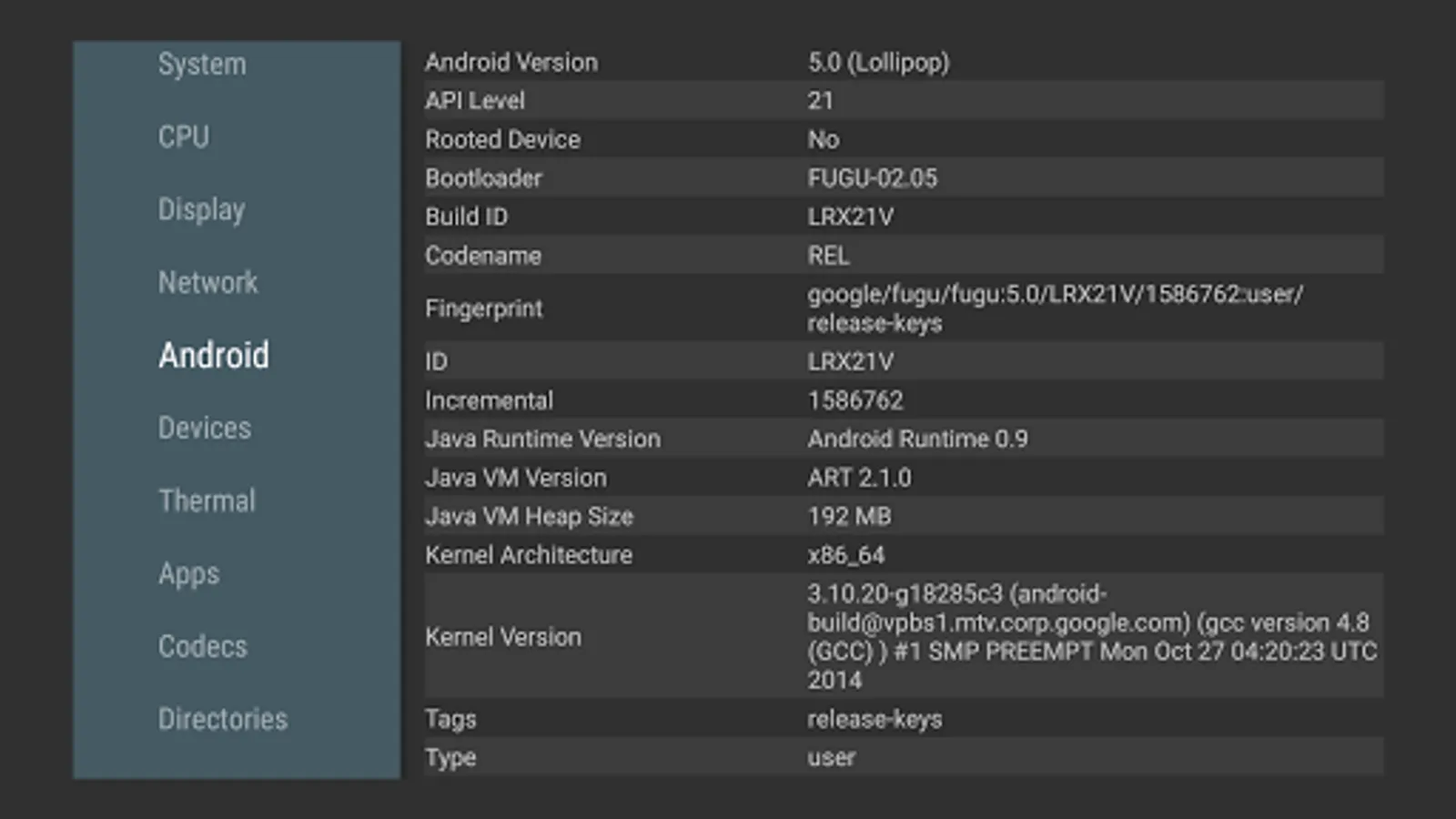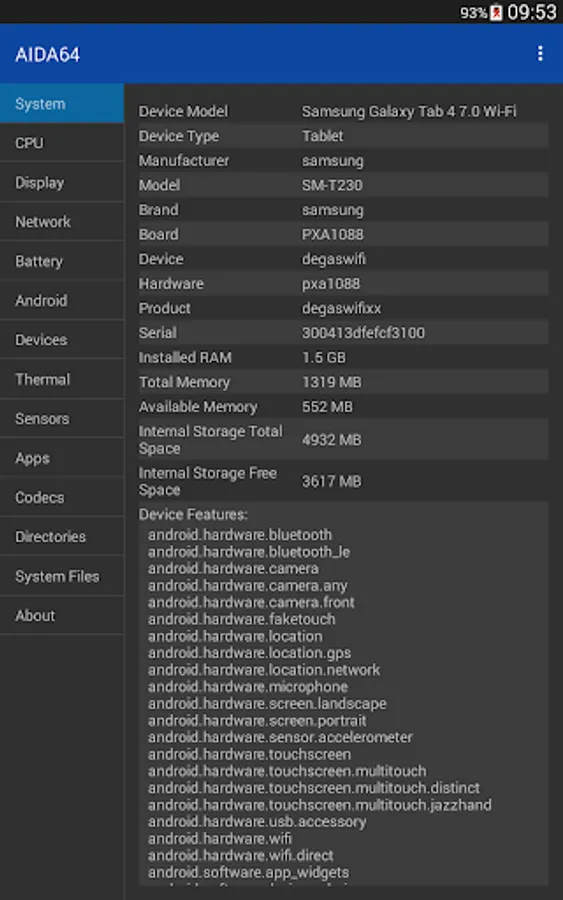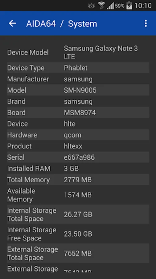 Hardware and software information utility for Android based devices. Based on the extensive hardware knowledge of the AIDA64 for Windows application, AIDA64 for Android is capable of showing various diagnostic information for phones, tablets, smartwatches and TVs, including:
