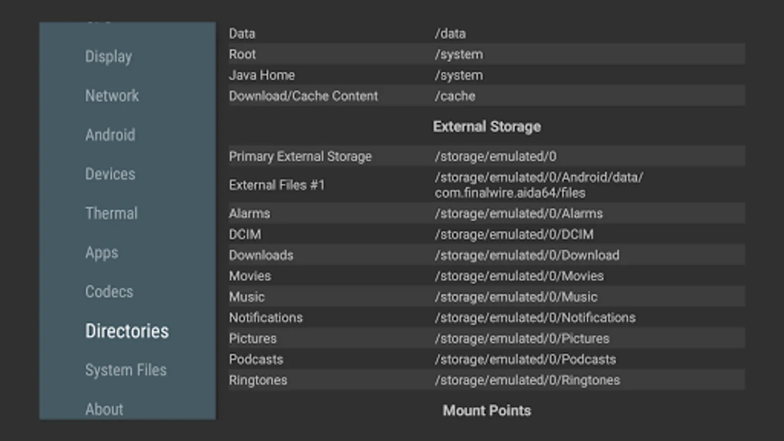 - On Android 4.2 to 4.3: READ_EXTERNAL_STORAGE -- also known as Photos/Media/Files. AIDA64 requires this permission to detect external storage (SD-card) total and free space. Note: Due to a bug in Play Store, even on newer Android releases Play Store will incorrectly ask for this permission, even though AIDA64 doesn't need and doesn't utilize the permission. After the installation of the app, you can check the actually utilized permissions in Android Settings / Apps / AIDA64, and you will see that this permission is not used by AIDA64.