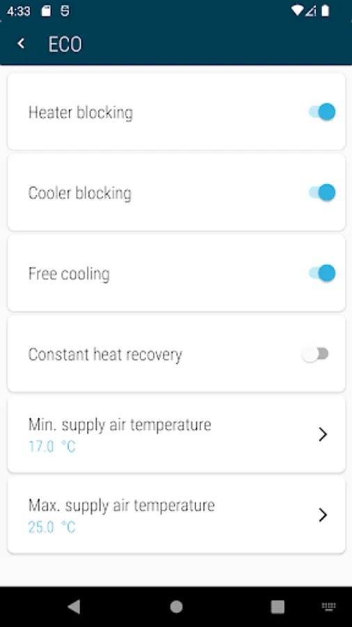 User-friendly “Komfovent Control” interface lets you monitor and control DOMEKT series air handling units with C6M or C8 automation via mobile phones. Application fully replicates control panel interface and allows to control your home ventilation from any place with internet access.