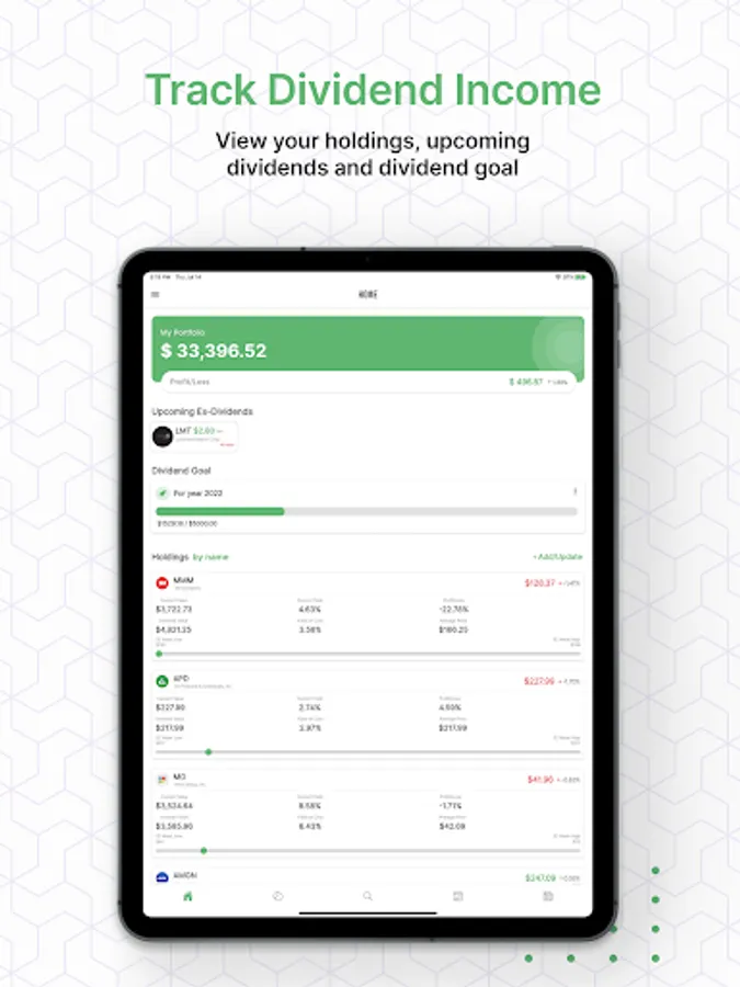 Dividend Investors finally have the best way to visualize and track their dividend income. Dividend Now allows you to automatically track all of your dividends in one place. You will save time on tracking your dividends, analyze your dividend income, view upcoming ex-dividend and dividend date and get latest news on all companies.