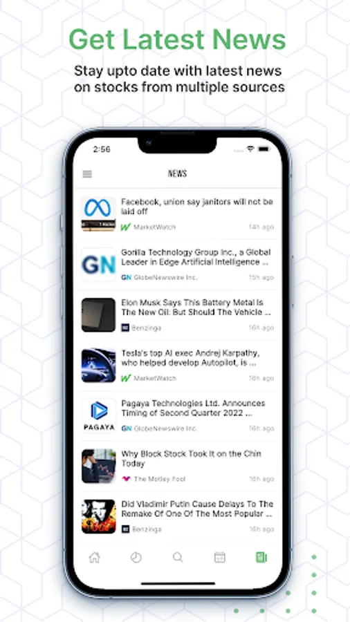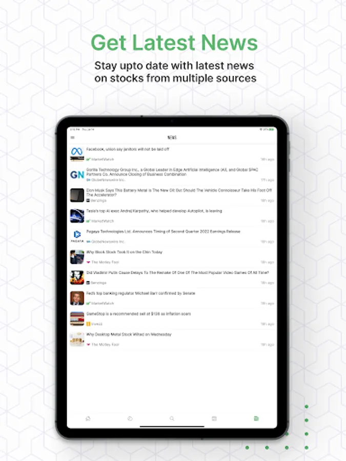 Disclaimer: This app and it’s content is for informational purposes only and should not be construed to constitute investment or financial advice. Currently, end of the day closing prices are shown for individual stocks.