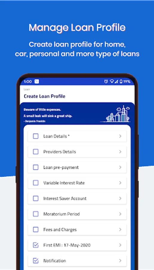 1. Create a loan profile for home loan, car loan, gold loan, educational loan etc and track them all together.