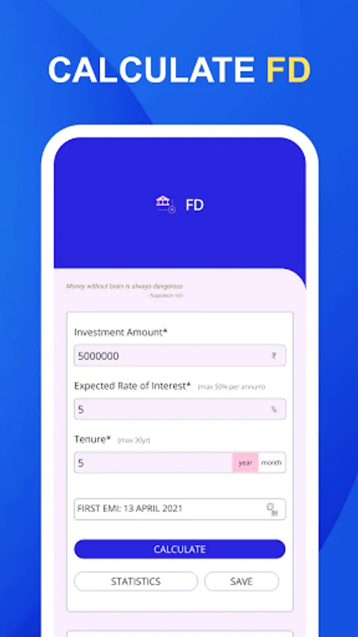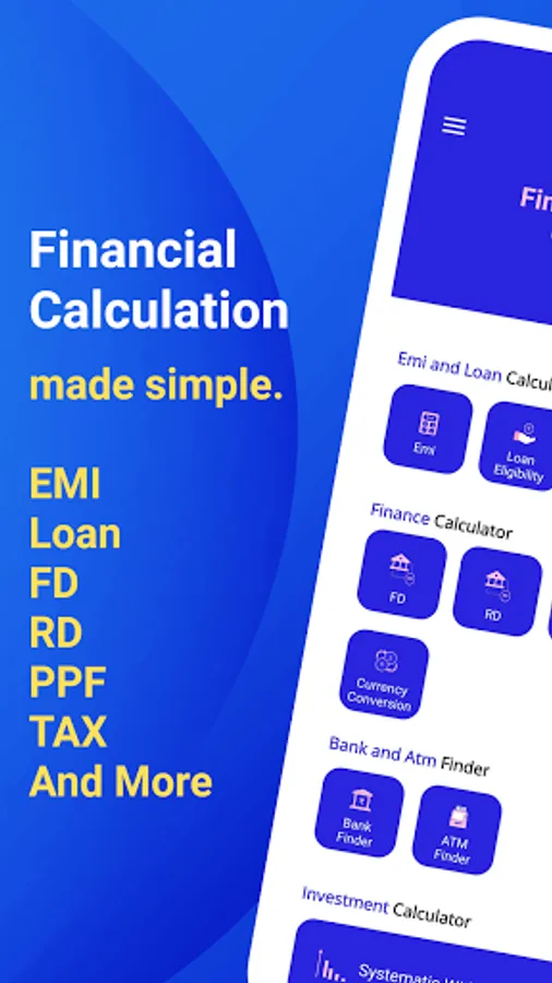 EMI ++ is an all-in-one Financial Calculator App by which you can Calculate EMI, Compare Loans, Calculate FD, Check Loan Eligibility, Find Tax, Calculate RD, Find Simple and Compound interest, Convert Currency, and Much Much More. It's 2021's Latest Financial - EMI Calculator.