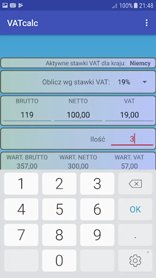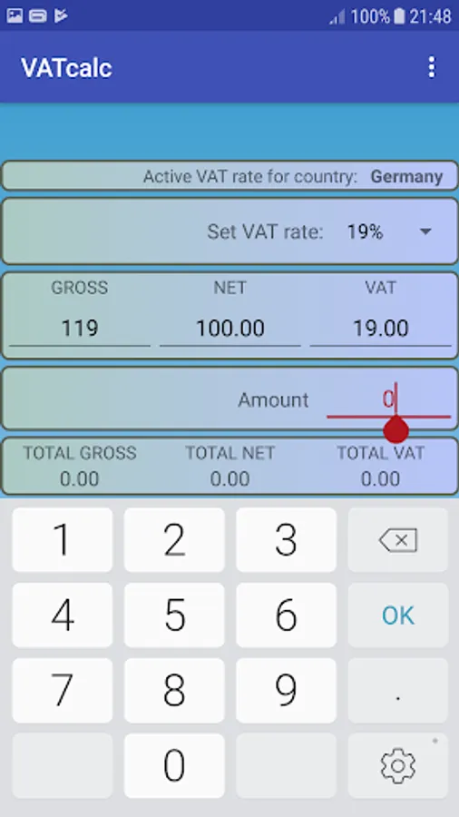 By using the program, you will quickly convert the amounts from Gross, Net or VAT.