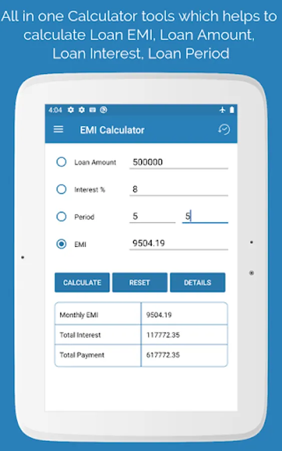 This Easy EMI Calculator app is just a financial tool and not any loan provider or connection with any NBFC or any finance services.
