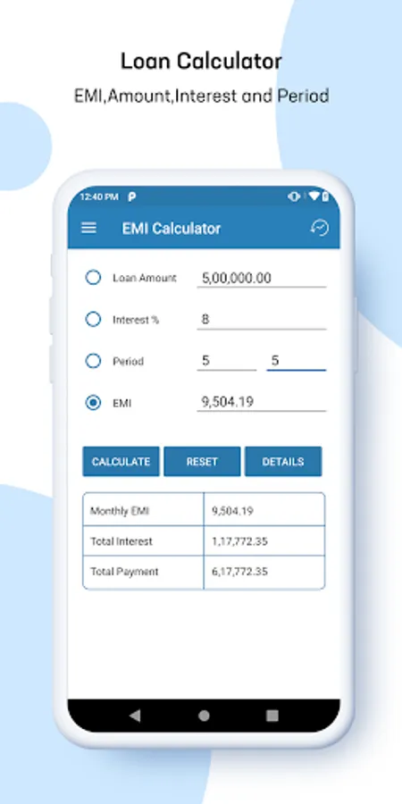 1. Accurately calculates EMI based on loan amount, interest rate, and loan tenure.