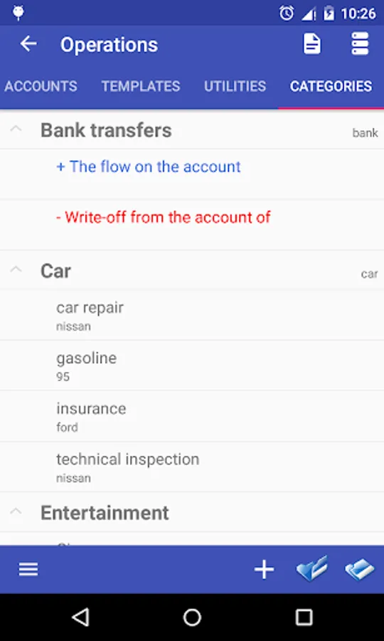 1. Maintain income and expenses of operations in the context of accounts, currencies and categories.