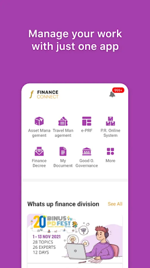 BINUS FINANCE CONNECT app is an easy way to access financial activities for all staff