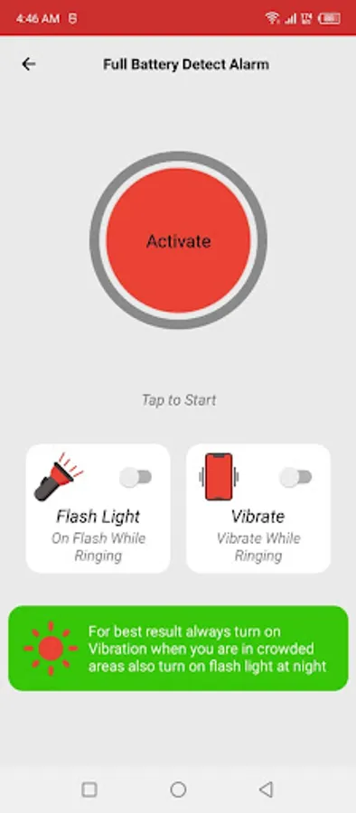 5. Another cool feature is along with the alarm activation the phone screen will flash and shake when the alarm is turned on.