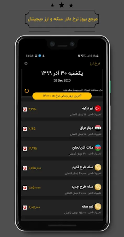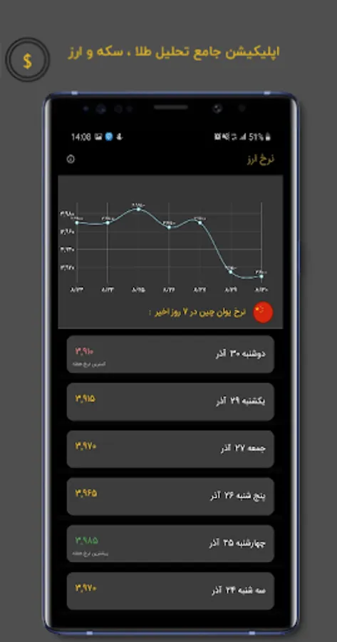 Chinese Yuan, UAE Dirham, Turkish Lira, Iraqi Dinar, Azerbaijani Manat and the price of coins and gold, and see their exchange rate changes in the last 7 days on the chart.