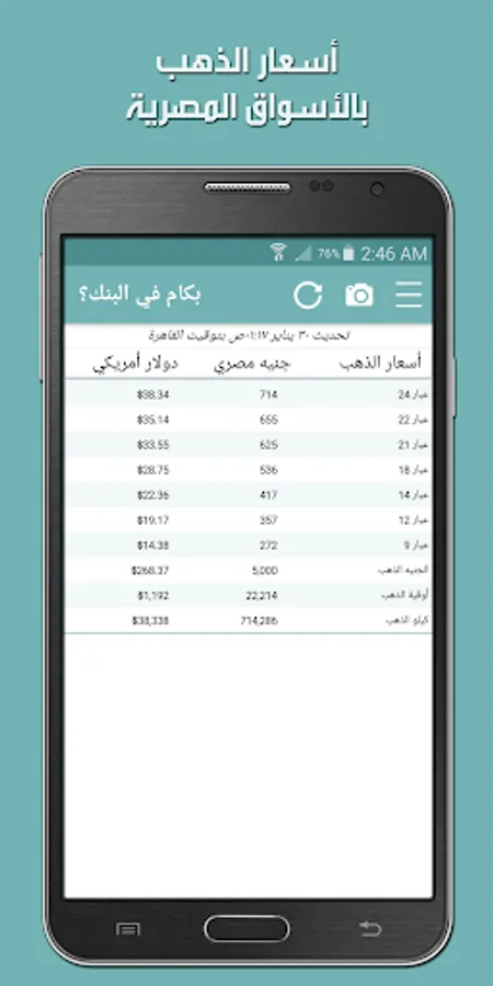 The application "Bikkam Bank" contains the prices of gold and silver in Egypt and is updated every minute.