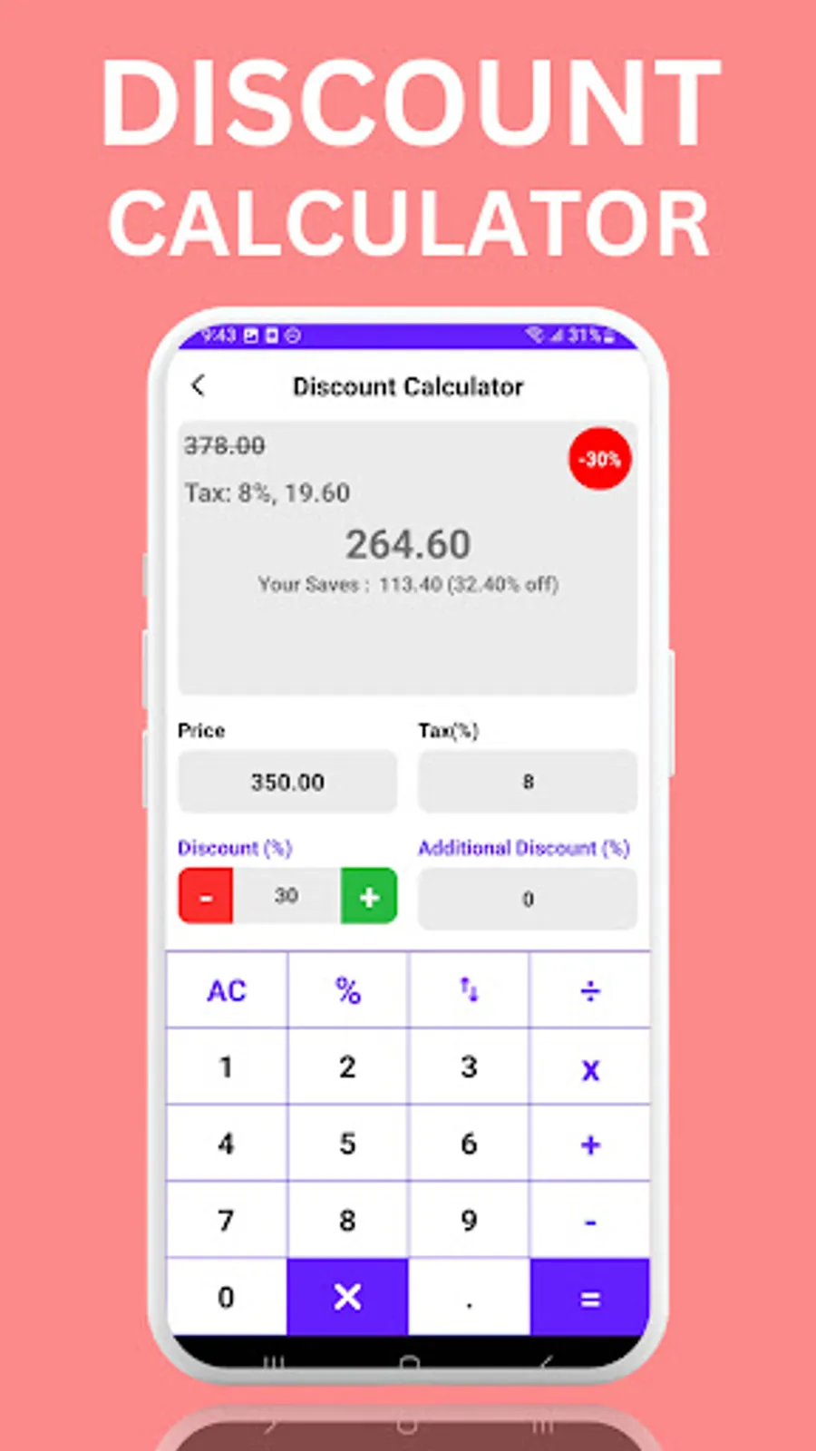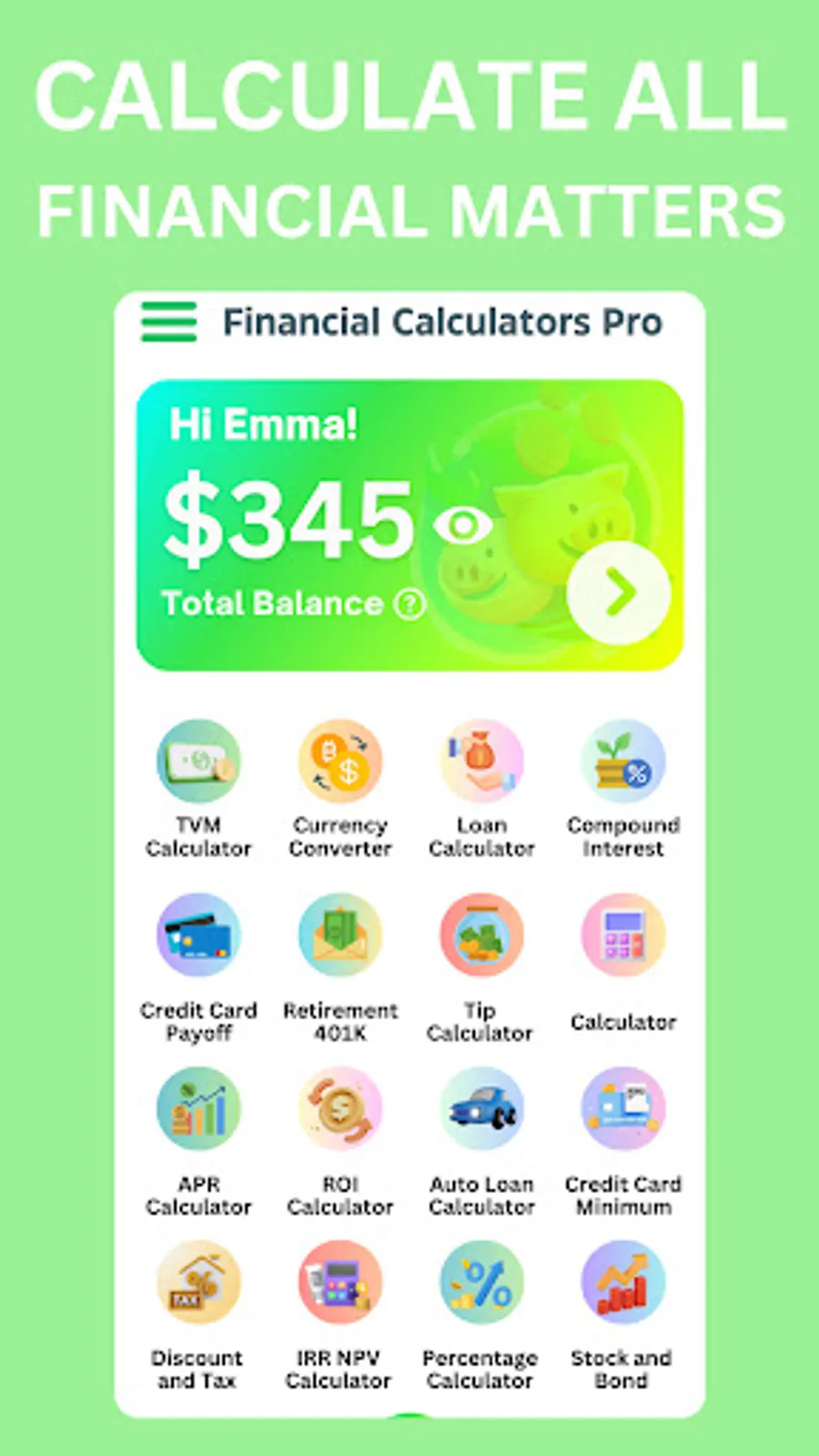 This App offers the following calculators for both Android Mobile Phones & Tablets.