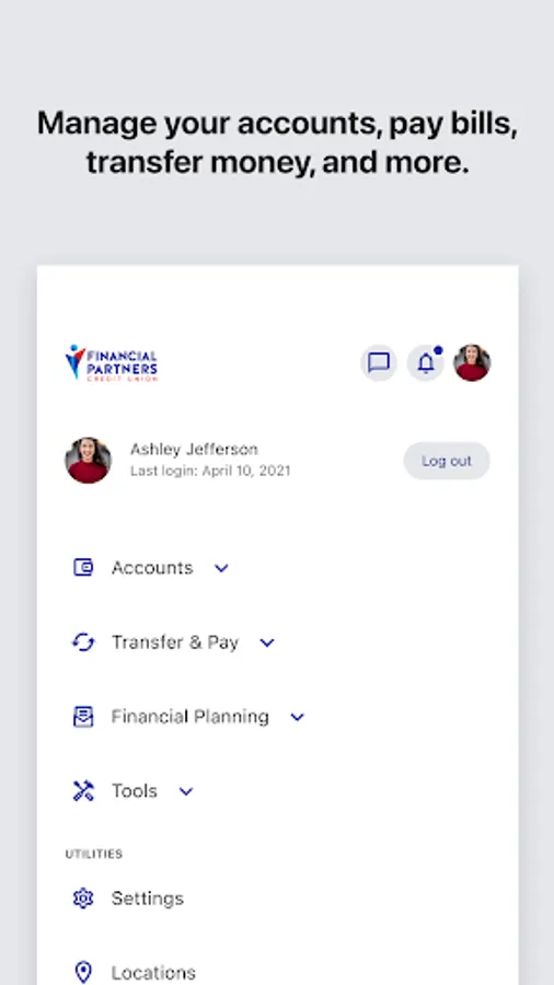 • Transfer funds between Financial Partners accounts or to other members