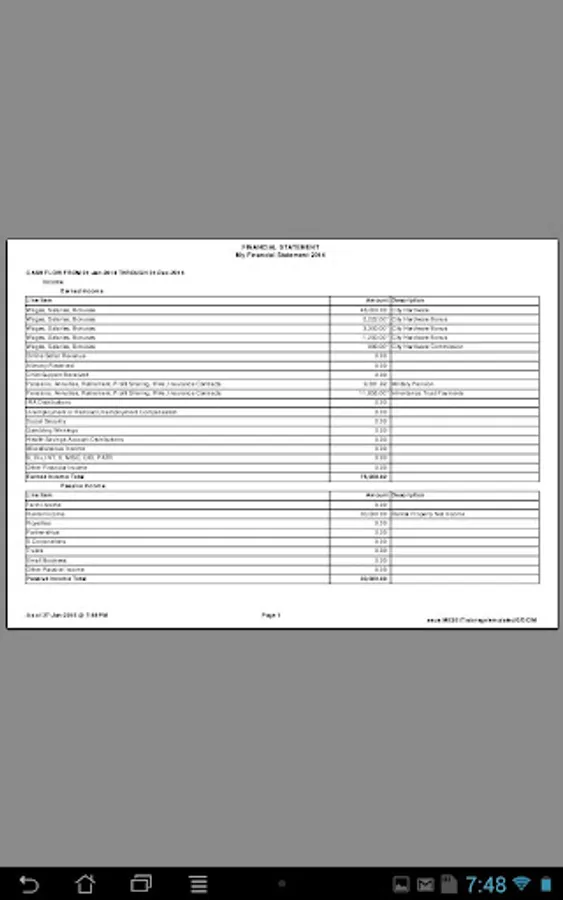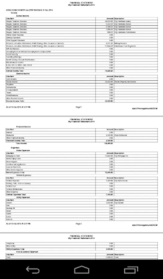 Everyone needs to complete a Financial Statement. If you do not know if your Cash Flow is positive or negative, or whether your Net Worth is positive or negative, how will you know if, over time, it is getting better or worse? How can you plan for Retirement? This is the most important step you can take to prepare for Retirement. And, the earlier you start preparing your Financial Statement, the earlier you can start making improvements to your retirement position. This app will allow you to prepare a Financial Statement as often as you like. The best time to do one is as of the first of the year. Do it while you are preparing your taxes. Do it every year, and compare prior year to the current year to see if your Cash Flow is getting more positive and if your Net Worth is becoming more positive. If not, you need to make changes to your spending and investing habits to improve your position.