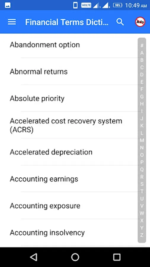 In addition, all the terms are listed alphabetically with faster search facility, easy to navigate through entire app.