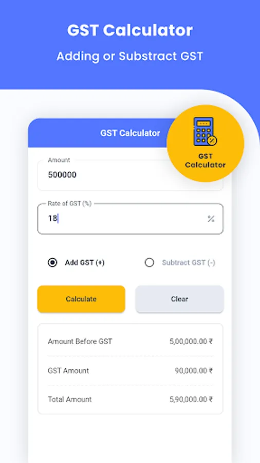 ● Easy GST Calculator option provides the option to find taxes to be paid by adding or removing GST amount.