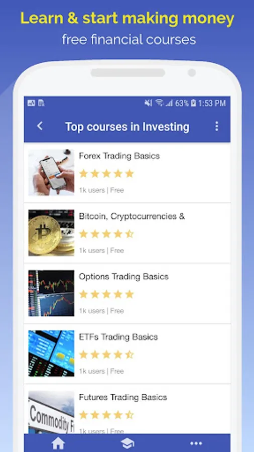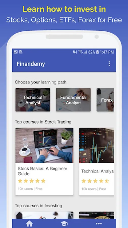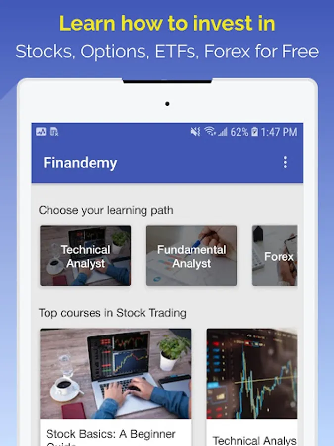 Learn Stock Basics, Stock Technical (Stock Charts), Stock Fundamental Analysis, Forex, Bitcoin, ETFs, Options, Futures, Mutual Funds, Bonds, etc. Trading - ALL-IN-ONE app for FREE