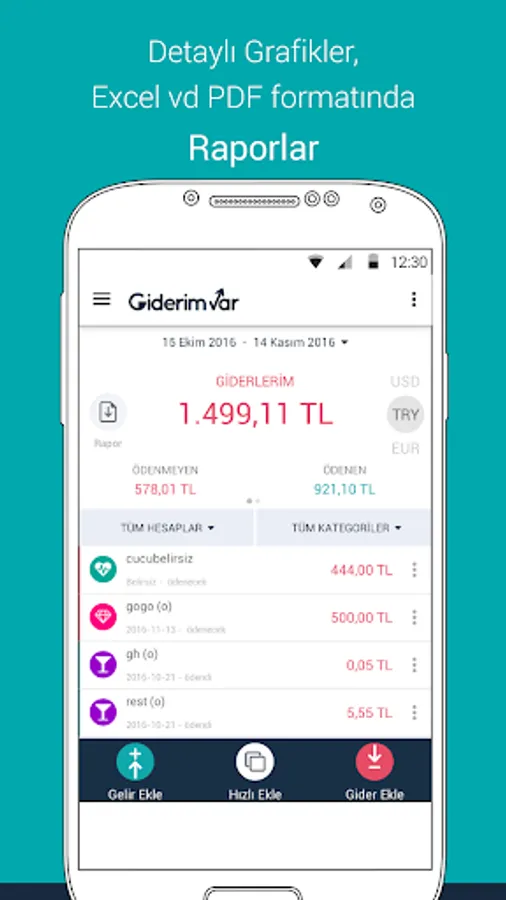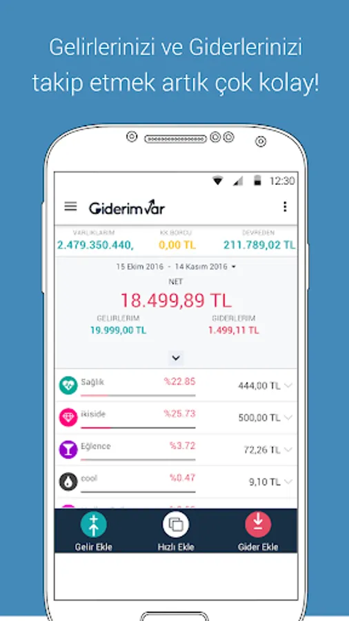 giderimv is beautiful and intuitive interface allows you to achieve your financial goals by managing your income and expenses.