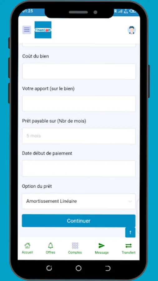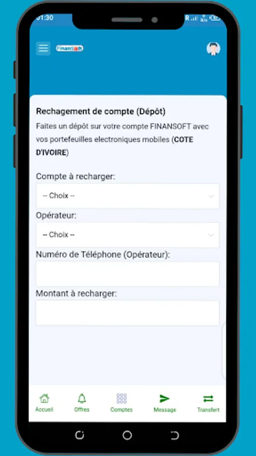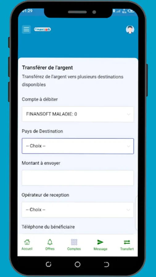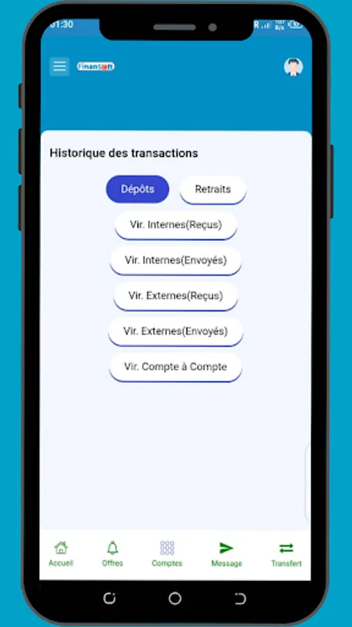 Choice of primary bank account: Personalize your experience by choosing your primary bank account. FinanSoft gives you the flexibility to select the account you want to use as your main account, simplifying your regular transactions.